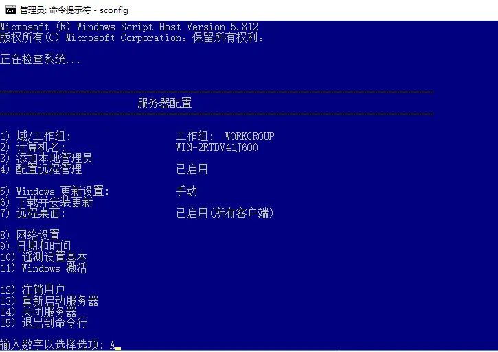 1、打開cmd,輸入sconfig,出現(xiàn)如下圖: