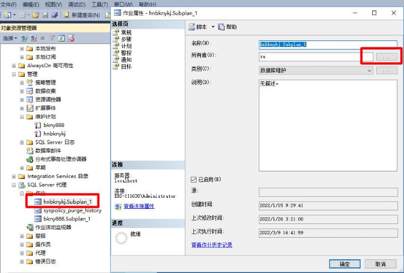十四、最后在”SQL Server代理——作業(yè)“找到新建的作業(yè)名稱,修改所有者為”sa“