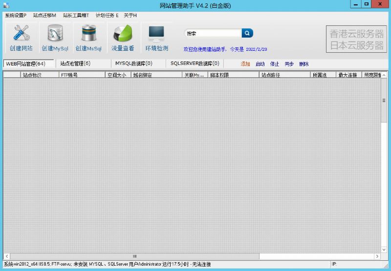 網(wǎng)站管理助手,是一款自動(dòng)建立虛擬主機(jī)站點(diǎn)的程序,通過本程序可以自動(dòng)建立IIS站點(diǎn)、FTP帳號(hào)、網(wǎng)站目錄、 Mysql數(shù)據(jù)庫等,并且各網(wǎng)站以獨(dú)立用戶隔離運(yùn)行,解決FSO安全風(fēng)險(xiǎn)。特別適合于租用云主機(jī)、VPS的站長使用。 本軟件還搭配了自動(dòng)化的服務(wù)器環(huán)境設(shè)置程序,能一鍵安裝PHP、Mysql、Zend、PhpMyadmin、FTp、Jmail等各種組件、 自動(dòng)對(duì)服務(wù)器進(jìn)行安全設(shè)置防止黑客入侵,即使您是不懂得服務(wù)器管理技術(shù)的非專業(yè)人員,通過本軟件也可以輕松管理服務(wù)器了。