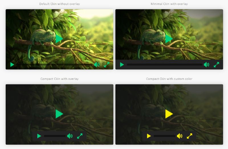 一款簡(jiǎn)約精美的HTML5在線視頻播放器插件,也相當(dāng)大氣,電腦手機(jī)端都適用。視頻播放器內(nèi)置有三種皮膚,可以自定義修改控制按鈕的顏色、遮罩層透明度和視頻封面等。