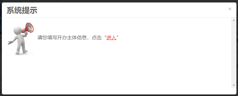 注冊成功后,系統(tǒng)會提示填寫開辦主體信息