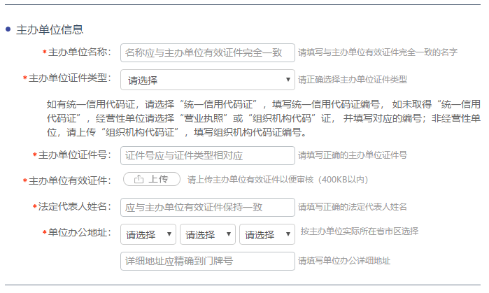 除以上個人信息以外,還需要準備主辦單位的證件掃描件。