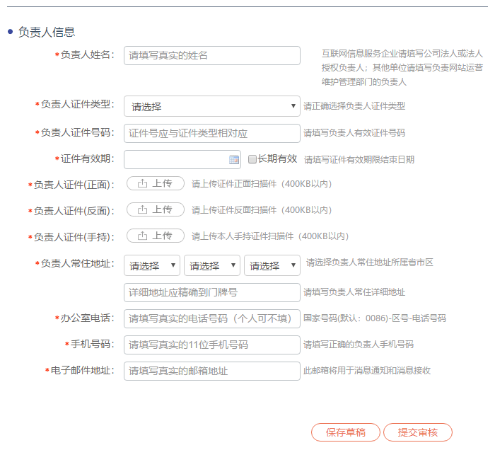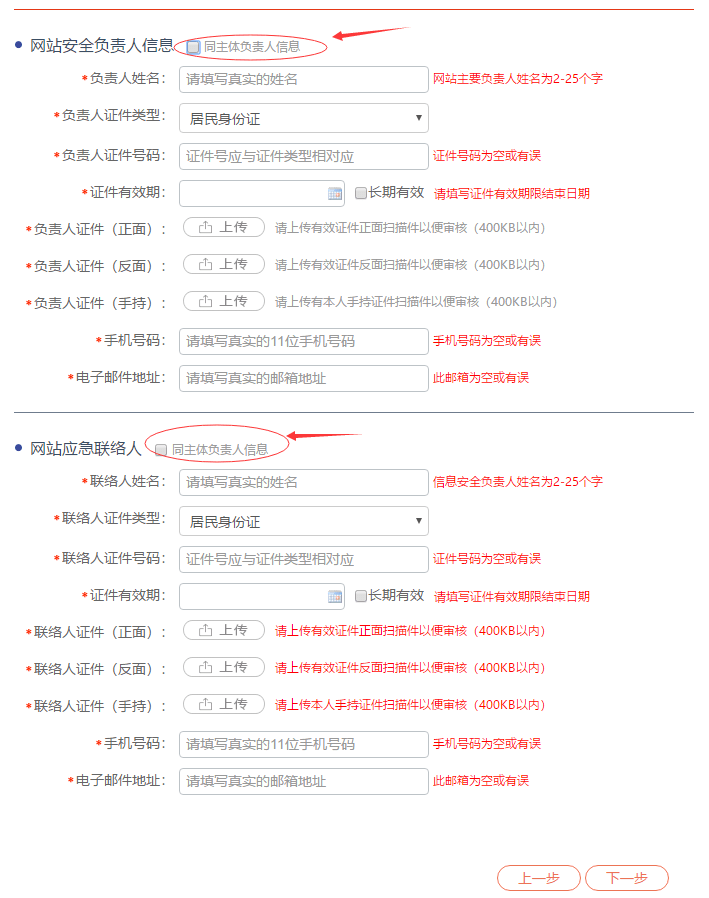 三、填寫網(wǎng)站安全負責人信息和網(wǎng)站應急聯(lián)絡人信息