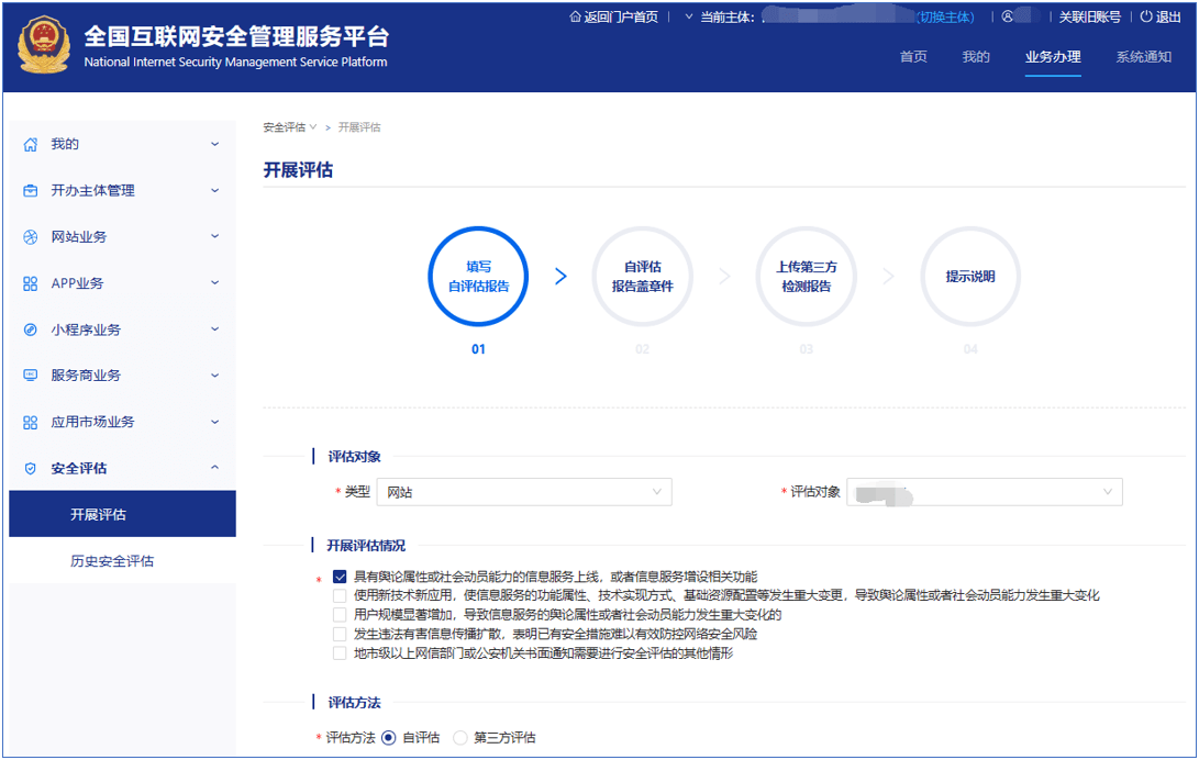 在這一步中,需要根據(jù)規(guī)定填寫相關(guān)信息,“*”為必填信息,首先需要填寫的是“評(píng)估對(duì)象”。